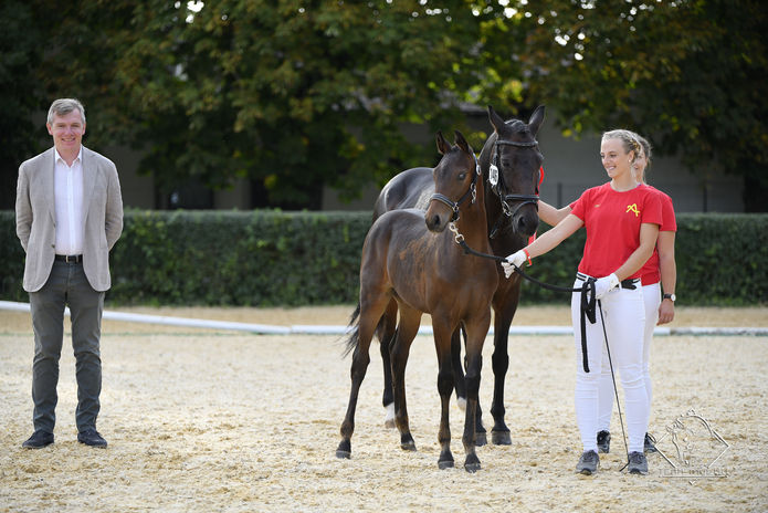 "Dieses Fohlen hat einfach alles" war die Begründung der Richter und er erhielt die Wertnoten Typ:9.5 (höchste Typnote bei den Hengstfohlen!) Exterieur: 8,5 und Bewegung 9,0.